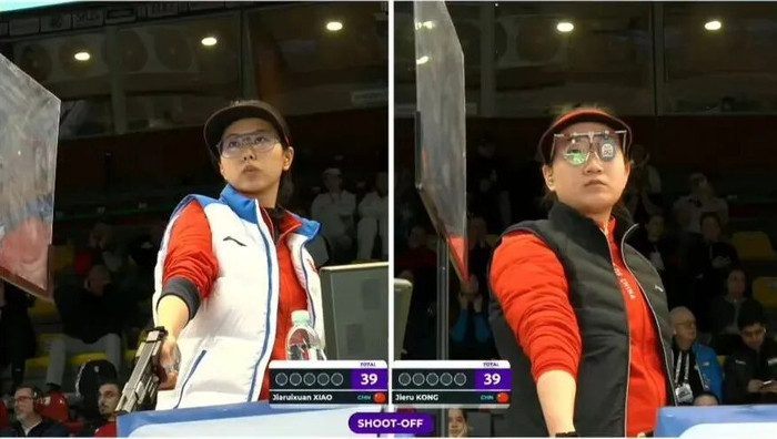在女子25米手枪项目的巅峰对决中