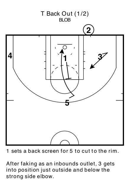 这个战术的打法也非常简单:三个球员分别站至俩侧底线以及篮底位置,剩下一名球员位于罚球线附近,形成一个“T字”。